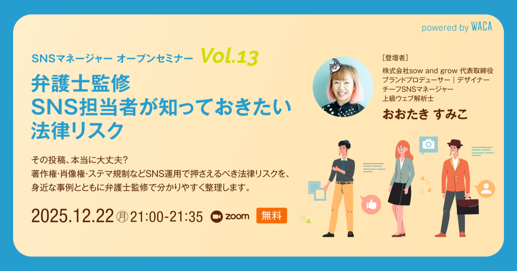 WACA主催【SNSマネージャー オープンセミナー Vol.13 】弁護士監修 SNS担当者が知っておきたい法律リスク