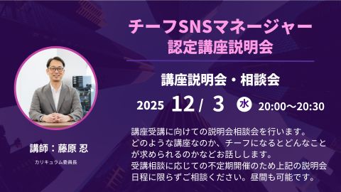 【講座説明会・相談会】12/3(水)チーフSNSマネージャー講座の説明会